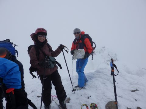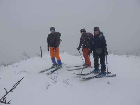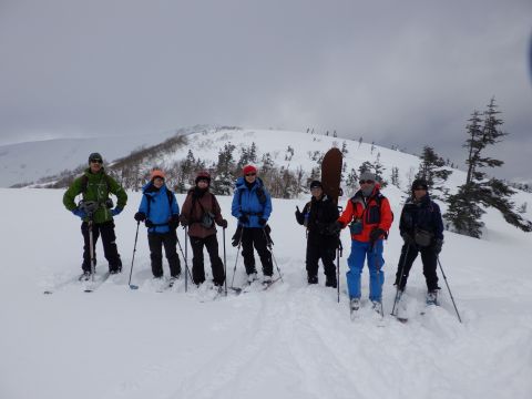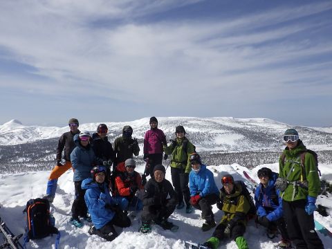 2月1日(日)、恒例の厳冬期山行に26名が参加した。寒気が残りあいにくの天気ではあったが、3パーティーに分かれて厳冬期の山形蔵王を楽しんだ。坊平のスキー場のリフト終点で集合写真。