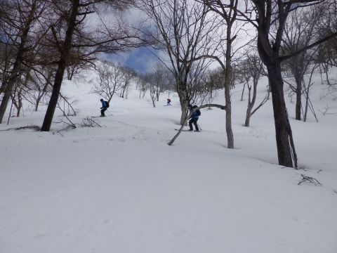 別の下山口に車をデポして臨んだこの日の山スキーであったが、天気が悪いこともありパラダイスコースを滑り澄川に戻った。写真は聖山平。