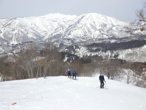 大杉岳の山スキー班は6名。燧を目指して出発しましたが、除雪が進んで車道歩きが長く、急遽大杉岳に転進して山頂に達しました。往復22㎞。