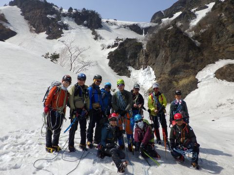 会津駒ヶ岳の山スキー班は8名。雪が少なく藪漕ぎが大変でしたが、女性ばかり5名が山頂に立ちました。